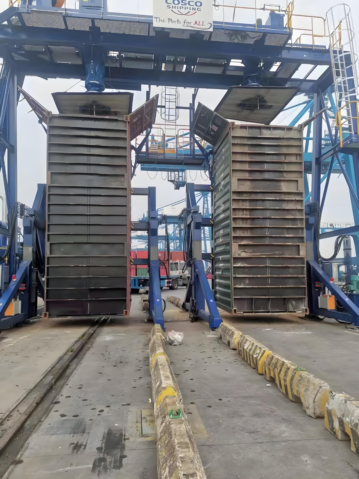 提升式双车道集装箱翻转机在设计上充分考虑行业使用需求,具备四大重要特色,全方位保障作业体验与设备性能: