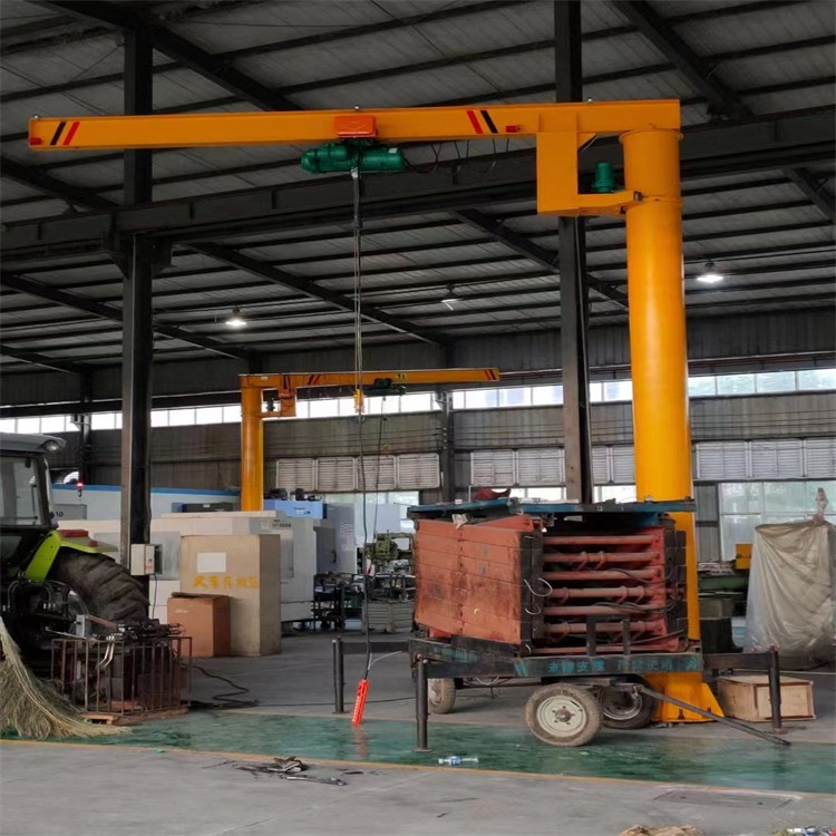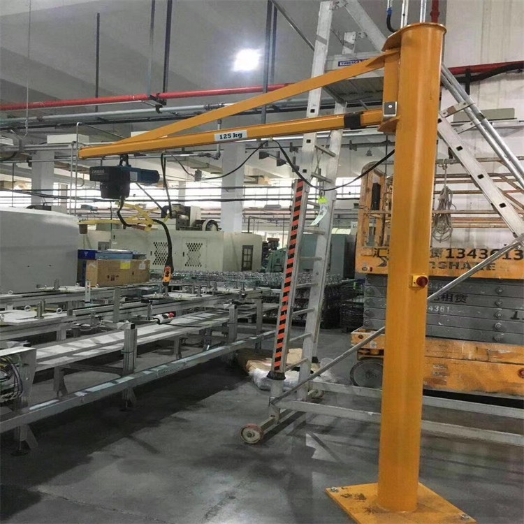 定柱式旋臂起重机配合了可靠性高的JPKK型环链电动葫芦尤其适用于短距离,使用频繁,密集性吊运作业,具有**、节能、省事、占地面积小,易于操作与维修等特点。环链电动葫芦有起升和在横梁上往返运行的功能,旋臂梁可由回转装置上的的减速机带动滚轮进行回转运动,电器控制箱安装在环链葫芦上。