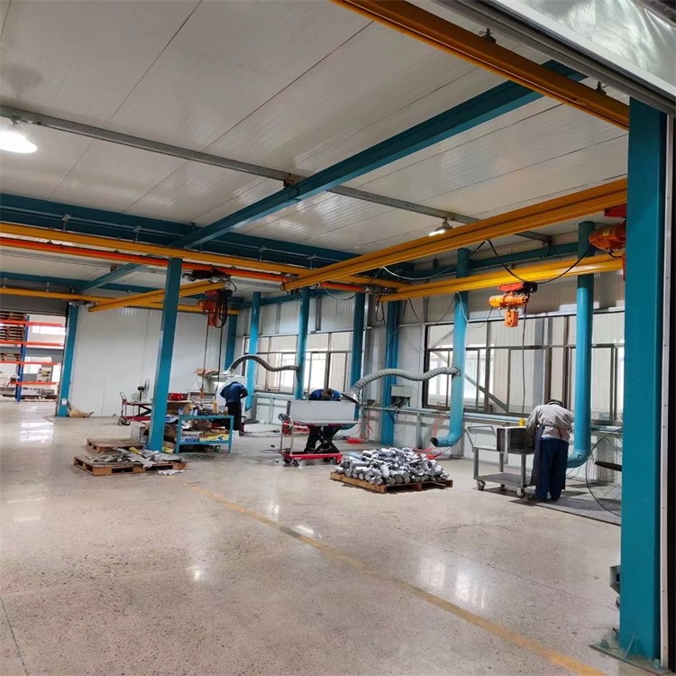 环形轨道系统:轨道采用强度高轻质型钢(如冷轧型材),通过模块化连接件拼接成闭合环形路径,可根据车间布局灵活调整直径和安装高度,适配不同作业区域的空间需求。