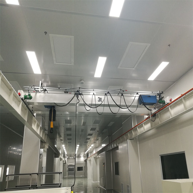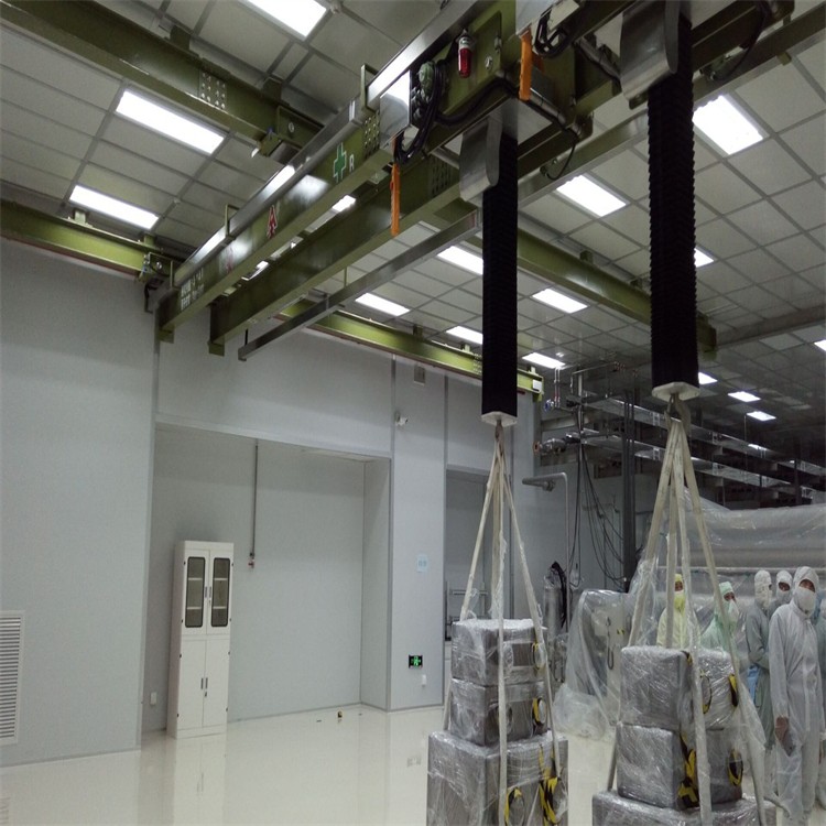 起重机采用轻量化、免维护设计,同时大量应用防静电、耐磨耐腐蚀材料,车轮采用不锈钢材料,轨道两侧设不锈钢槽,减速器采用全封闭、高密封绝无渗漏油污染,高防护等级无风扇防爆电机,双密封制动器能有效预防电机内因传动磨损产生污染颗粒外泄。大车车轮组全封闭设计,不锈钢车轮,表面高防锈处理的其他零部件可以有效预防金属材料锈蚀污染,自润滑全密封轴承避免润滑污染。