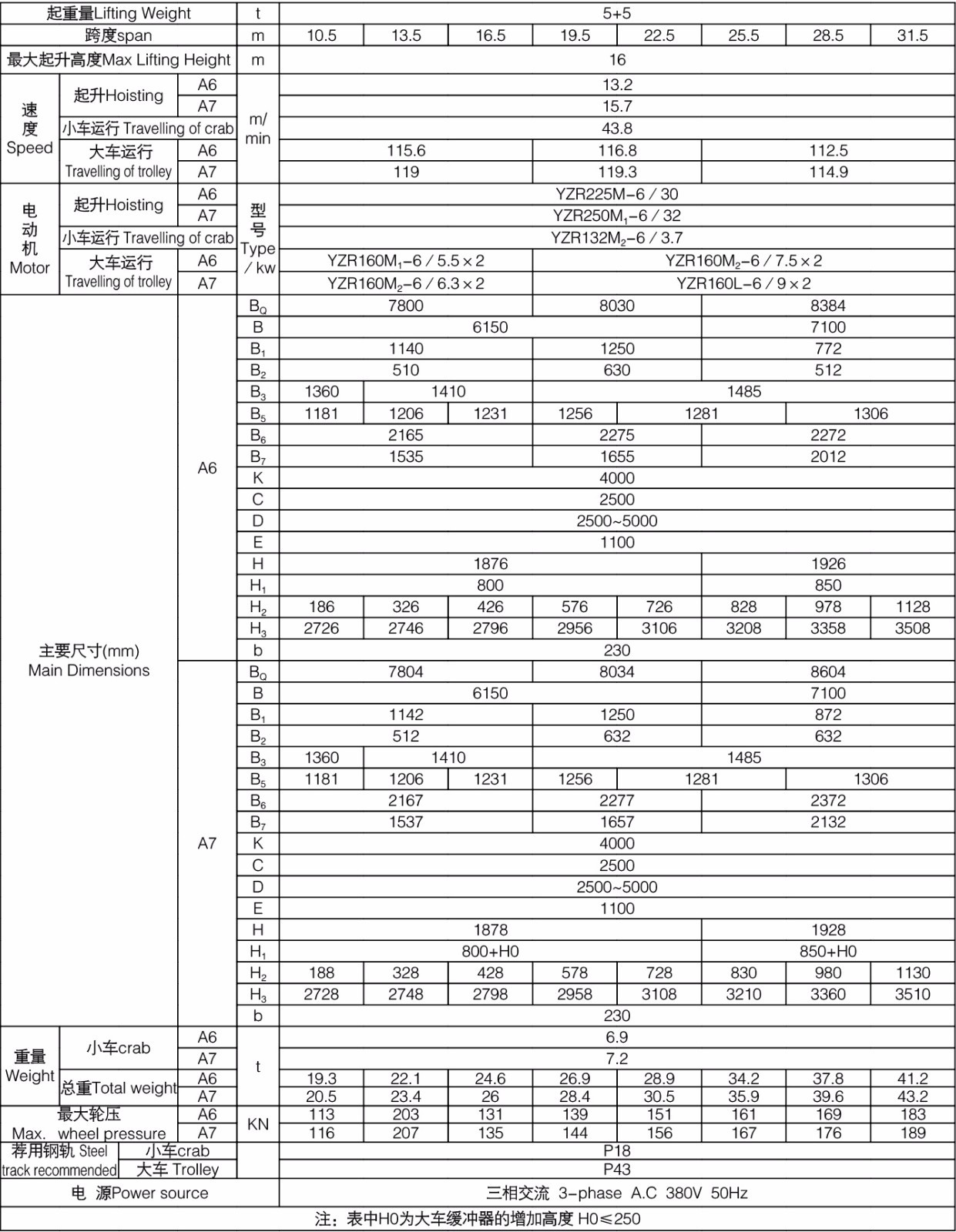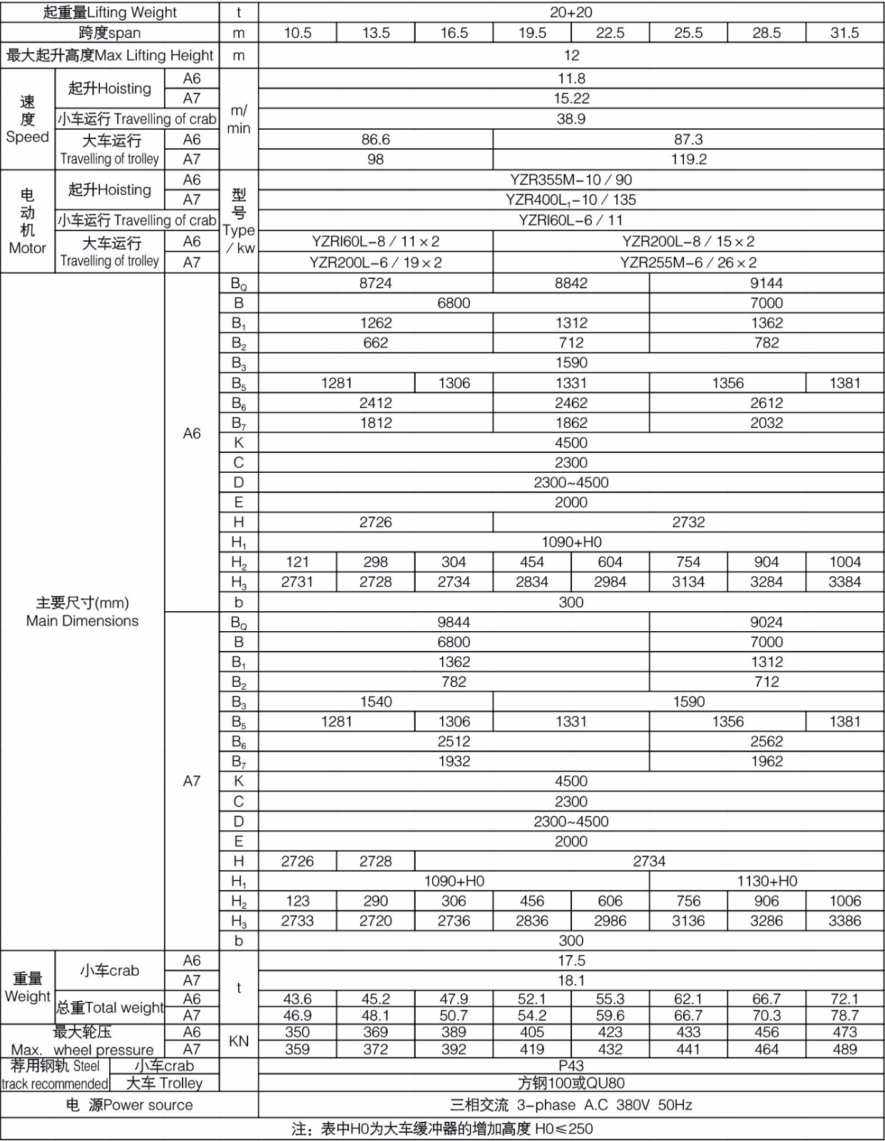 4、挂梁上下吊点距C、D可根据用户要求确定,表中尺寸仅供参考。