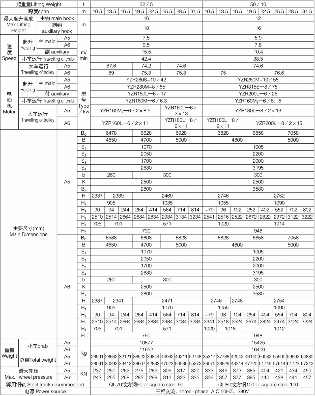 QD 型 5~50/10 吨吊钩桥式起重机介绍