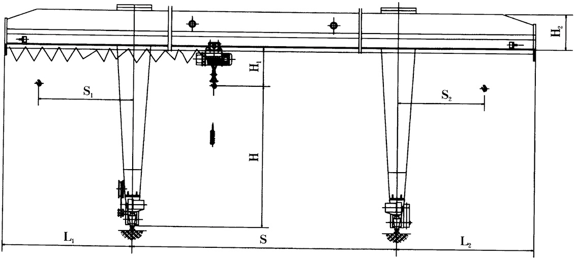 L 型支腿:两侧支腿呈 “L” 形(水平段与垂直段垂直连接),垂直段落地并连接大车运行机构,水平段与主梁刚性连接,形成稳定的门架结构。L 型支腿设计可减少对地面空间的占用,提升作业区域的通行性。
