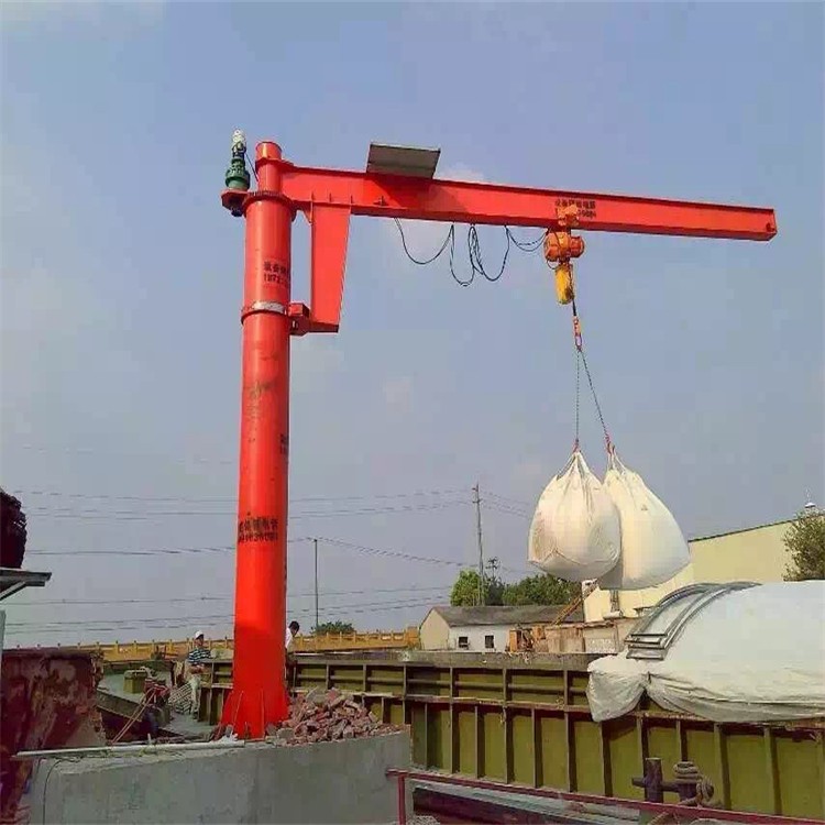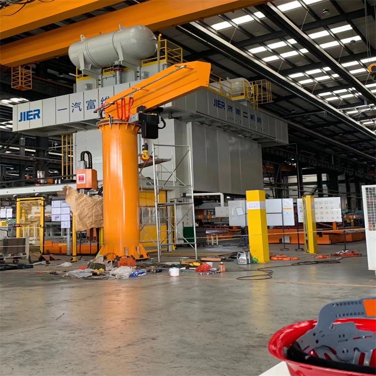 定柱式旋臂起重机配合了可靠性高的JPKK型环链电动葫芦尤其适用于短距离,使用频繁,密集性吊运作业,具有**、节能、省事、占地面积小,易于操作与维修等特点。环链电动葫芦有起升和在横梁上往返运行的功能,旋臂梁可由回转装置上的的减速机带动滚轮进行回转运动,电器控制箱安装在环链葫芦上。