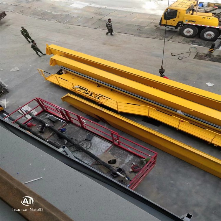 端梁:为矩形钢管或钢板焊接成型,成型后在数控机床一次定位加工,以确*尺寸精度和配合公差。每个端梁配有双轮缘的车轮、缓冲器和防出轨保护装置。主梁和端梁采用强度高螺栓连接,整机精度和运行平稳。双梁起重机还会在沿主梁方向大车驱动侧布置维修平台。