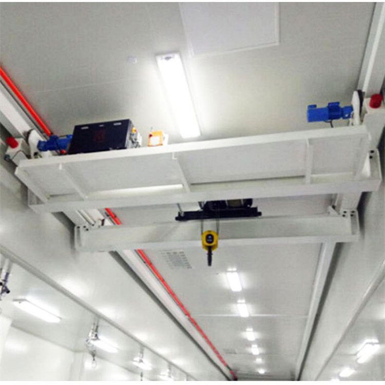 起重机采用轻量化、免维护设计,同时大量应用防静电、耐磨耐腐蚀材料,车轮采用不锈钢材料,轨道两侧设不锈钢槽,减速器采用全封闭、高密封绝无渗漏油污染,高防护等级无风扇防爆电机,双密封制动器能有效预防电机内因传动磨损产生污染颗粒外泄。大车车轮组全封闭设计,不锈钢车轮,表面高防锈处理的其他零部件可以有效预防金属材料锈蚀污染,自润滑全密封轴承避免润滑污染。