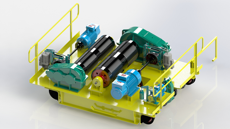 小车运行:安装在主梁轨道上,带动主副钩沿主梁横向移动,运行速度 20~40m/min,采用集中驱动,配合限位装置实现精准停靠。