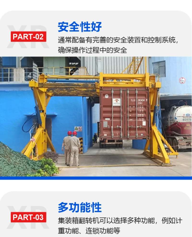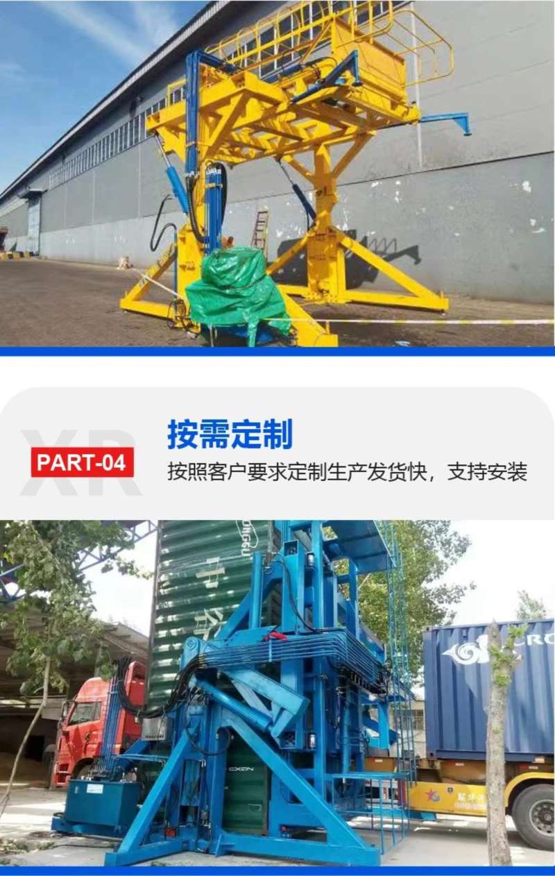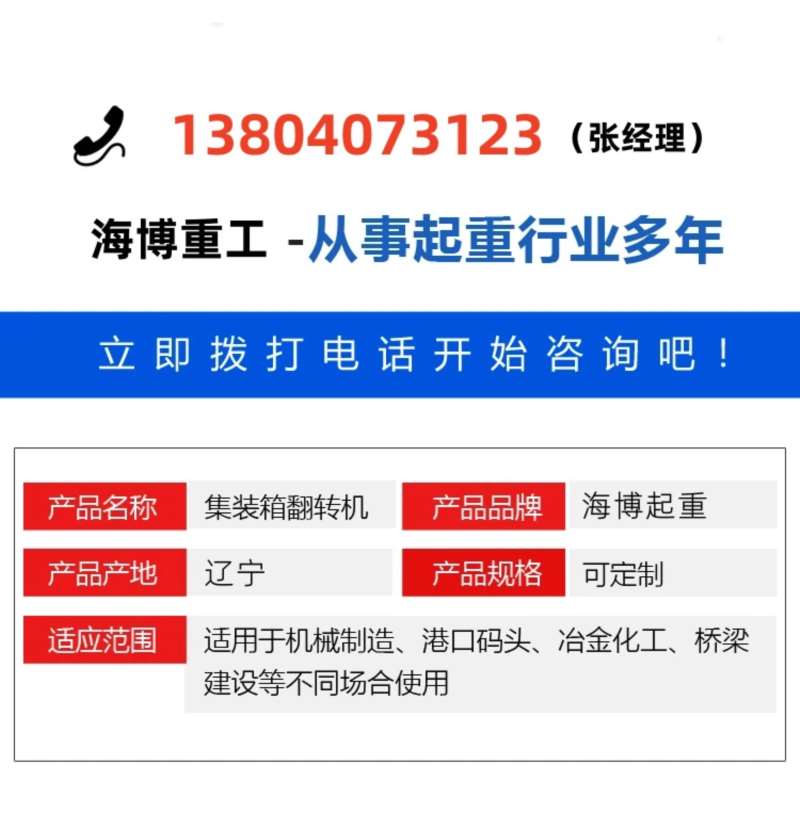 单箱翻转能力:一次仅能翻转 1 个集装箱(20 英尺或 40 英尺标准箱),区别于多箱同时处理的大型设备,主打 “小批量、灵活作业”。